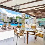 Next to a bus stop to get everywhere quickly. We had a sunny balcony. Wines, spirits and beers in the bar. We greatly enjoyed the pool.